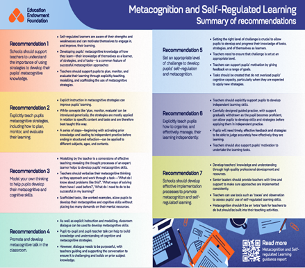 Developing pupils’ metacognitive and self-regulatory capacity is still ranked among the most impactful evidence-informed teaching and learning strategies.