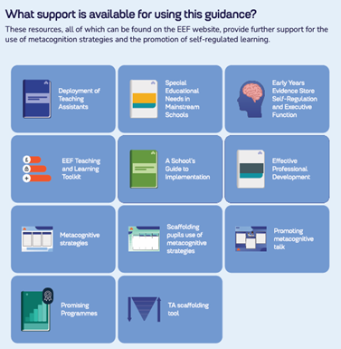 Towards the end of the document, and within the Additional Tools section of the online version, is a very useful summary of additional EEF resources that link to the topic.