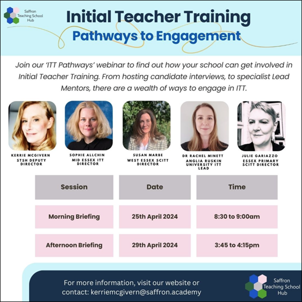 Our collaboration as a Lead Partner with Mid Essex ITTWest Essex SCITT and CTSN SCITT is central to our ITT work. Together, we: