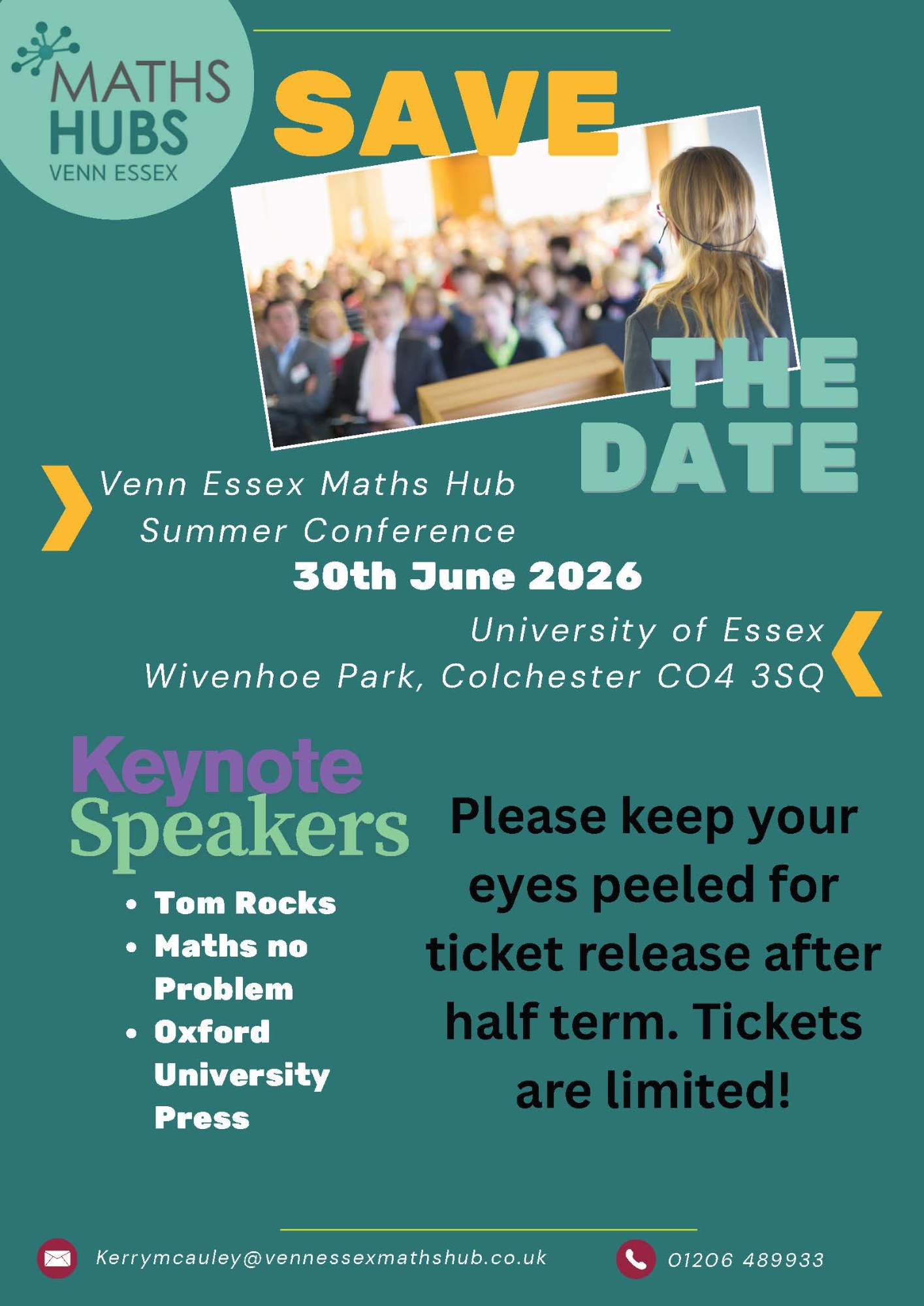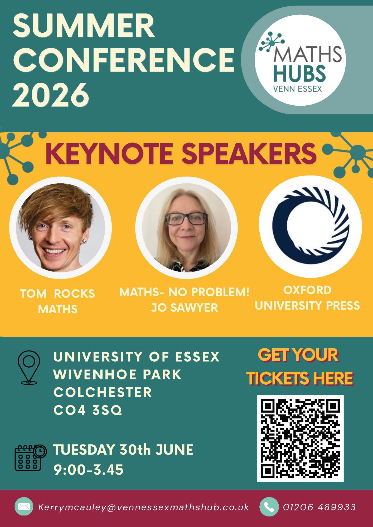 Our summer conference will take place on 30 June 2026 at the University of Essex (CO4 3SQ), with keynote speakers Tom Rocks, Maths No Problem! and Oxford University Press.