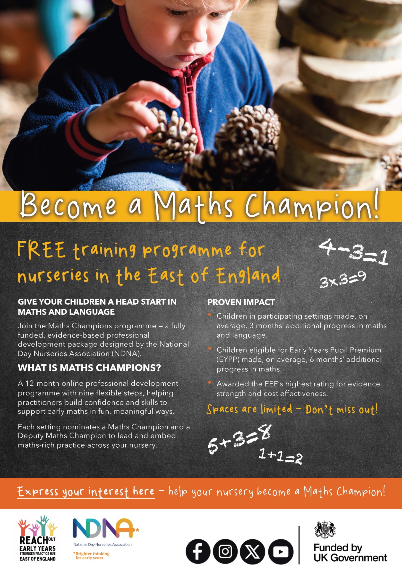 Join the Maths Champions programme - a fully funded, evidence-based professional development package designed by the National Day Nurseries Association.