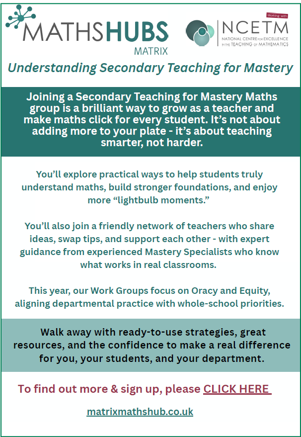 Visit matrixmathshub.co.uk for our full range of Early Years to Post-16 CPD opportunities.