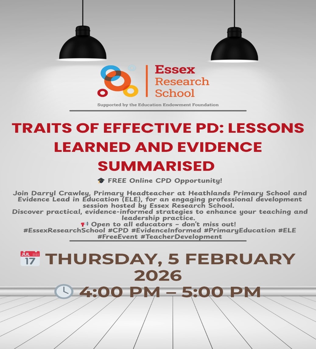 Join Darryl Crawley, Primary Headteacher and Evidence Lead in Education (ELE), for an engaging professional development session hosted by Essex Research School.