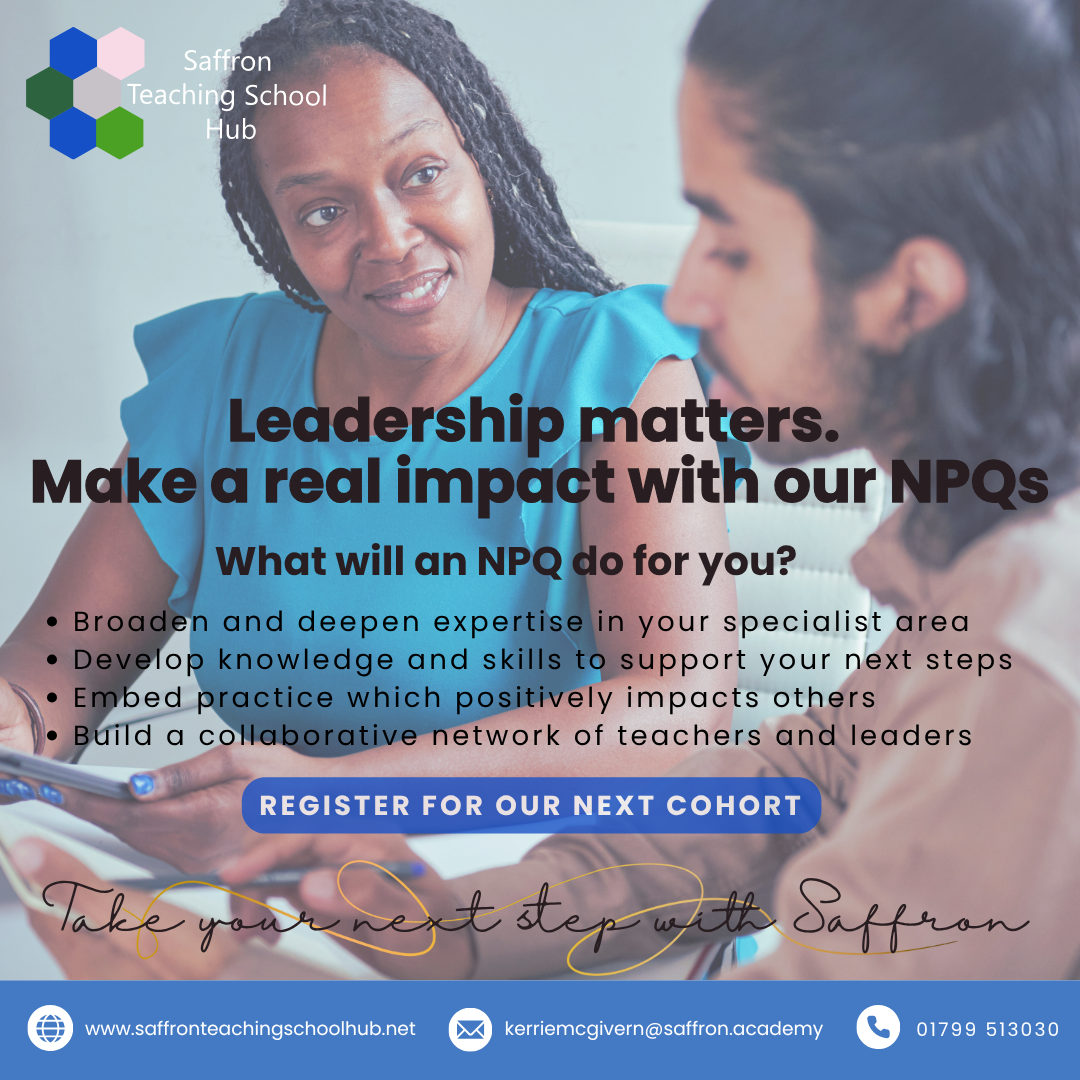 As the term progresses, I am looking forward to supporting the work of the Saffron Teaching School Hub as it continues to go from strength to strength.